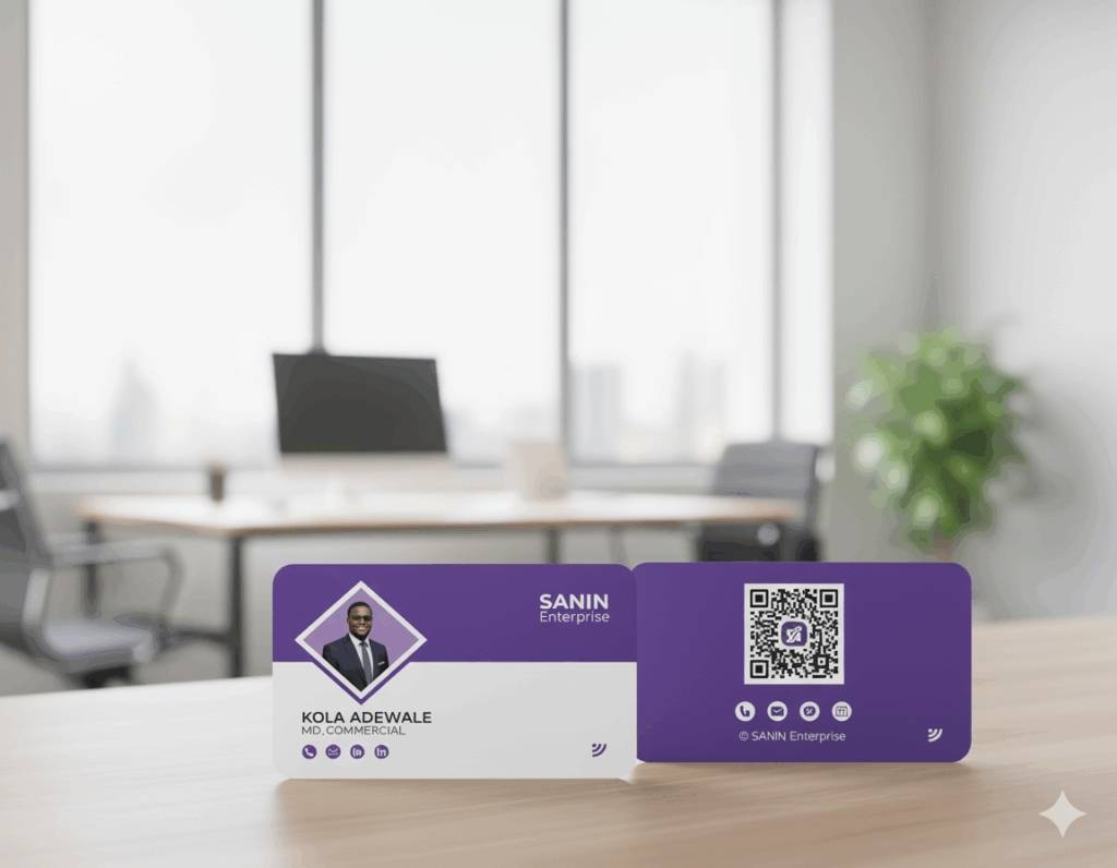 What you get: A premium PVC card (front + back design) with built-in NFC. One tap instantly shares your contact details, website, store, portfolio, or social links.
